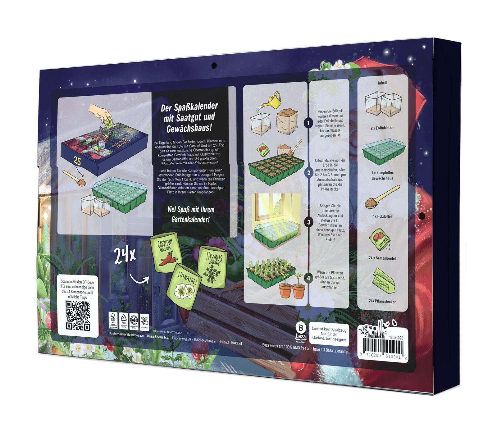 Saatgut Adventskalender Weihnachtsmann mit 24 Samen und Gewächshaus