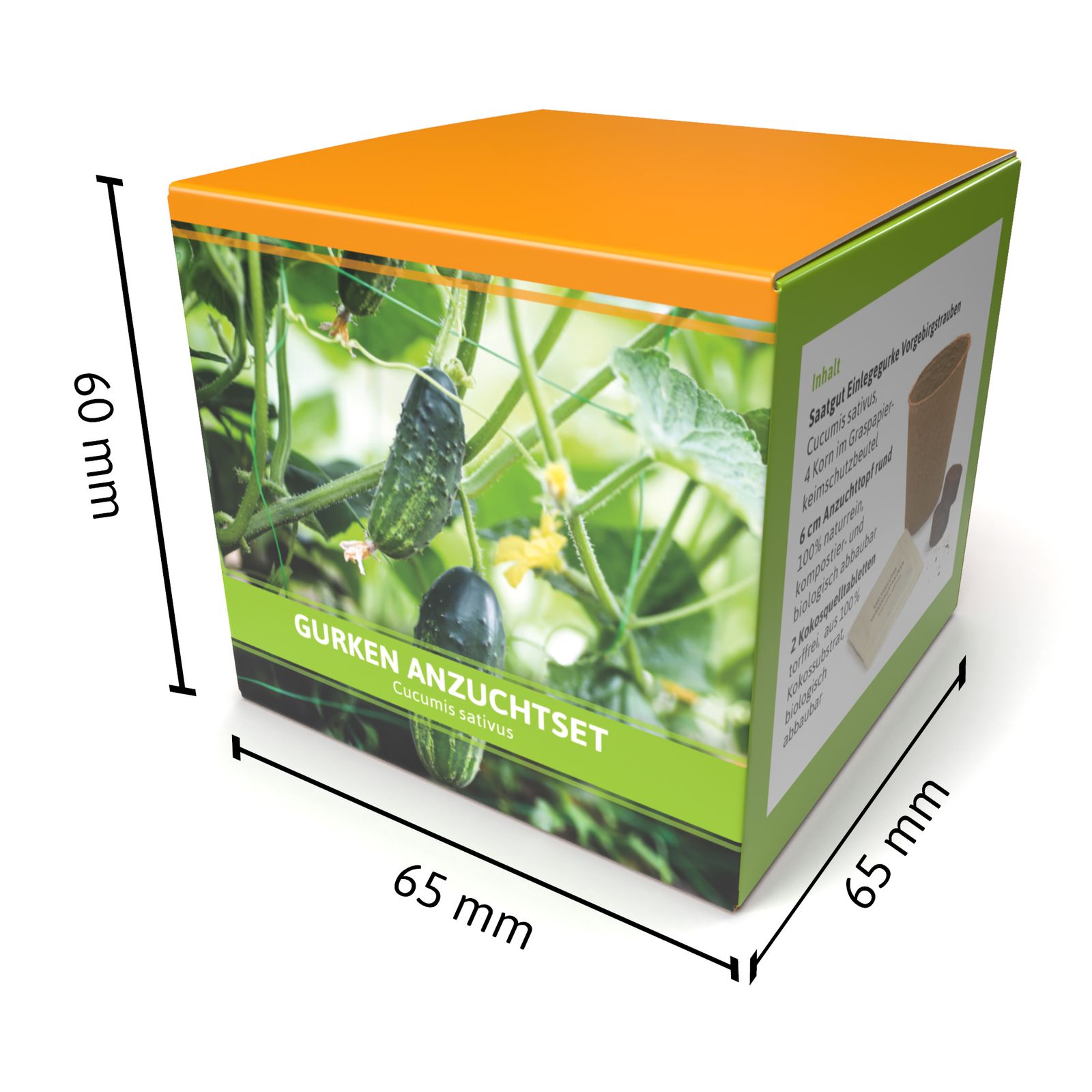 Auf die Idee, mit einem Anzuchtset für Gurken zu werben, muss man erst mal kommen. Solche Werbung bleibt natürlich in den Köpfen der Menschen. Gurken gehören zum beliebtesten Gemüse und können sowohl im Garten als auch auf Balkon und Terrasse gezogen werden. Das Anzuchtset beinhaltet den Gurkensamen im Graspapierkeimschutzbeutel, den naturreinen und biologisch abbaubaren Anzuchttopf und die Kokosquelltabletten. Sie werben also nicht nur pfiffig, sondern auch nachhaltig. Ihre Werbung oder das Logo können Sie leicht auf dem Deckel der Verpackung anbringen. Benutzen Sie dafür am besten einen Aufkleber oder Stempel.