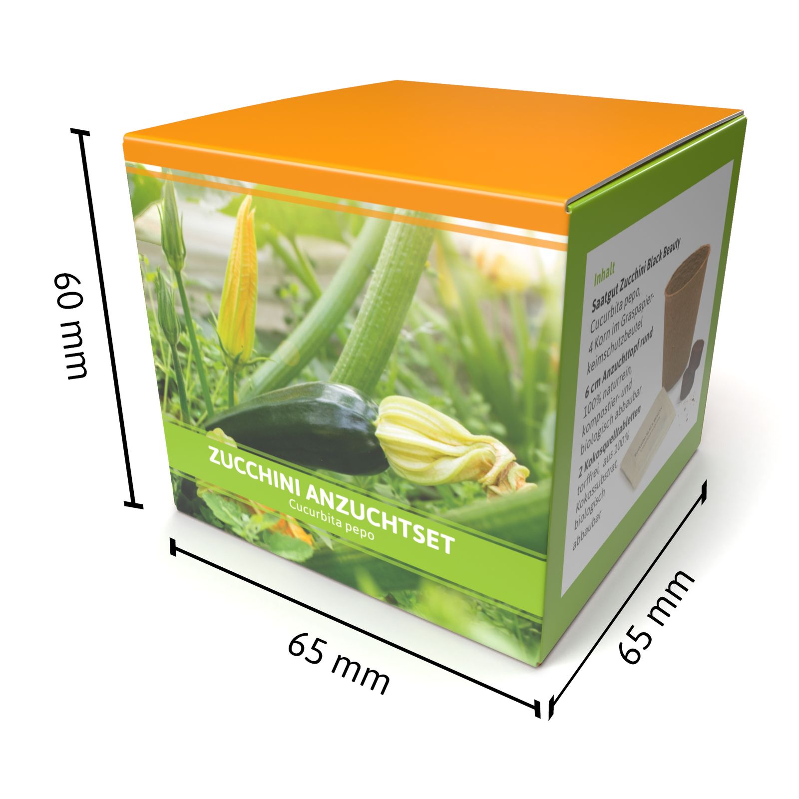 Die Zucchini steht symbolisch für die Weiterentwicklung und die Veränderung. Das ist in der Zusammenarbeit mit Geschäftspartnern und Kunden wichtig. Werben Sie mit einem Anzuchtset Zucchini dafür, dass sich Ihre Zusammenarbeit weiter entwickelt und stabilisiert. Das Anzuchtset beinhaltet nicht nur das Zucchini-Saatgut, sondern auch den Anzuchttopf und das Substrat. Die Empfänger Ihrer Werbebotschaft brauchen nur noch aussäen. So wie aus dem kleinen Samenkorn eine mächtige Pflanze wird, so sollte sich auch Ihre Partnerschaft entwickeln. Für Ihre Werbebotschaft oder das Logo bietet der Deckel der Verpackung ausreichend Platz. Bringen Sie beides am besten mit einem Stempel oder Aufkleber auf.