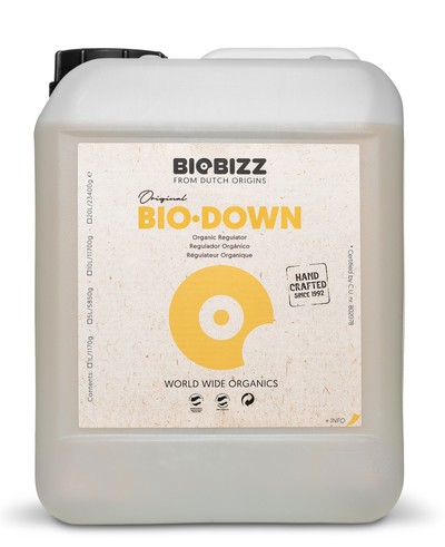 Biobizz Bio-Down kann sowohl für die Wachstums- als auch für die Blüteperiode verwendet werden und eignet sich für jedes Substrat. Nach der Anwendung den ph-Wert messen und ggf. wiederholen.