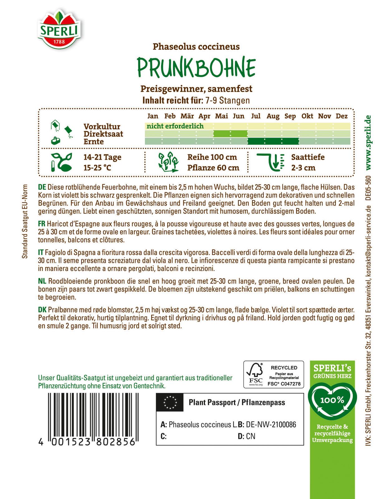 Preisgewinnerist eine rotblühende, ertragreiche Sorte von hohem Wuchs. Die sehr langen, fleischigen Hülsen enthalten violettrote Körner mit schwarzen Sprenkeln. Die breitovalen Hülsen sind gut zum Einwecken und Tiefgefrieren geeignet. Überreife Körner ergeben einen kräftigen Bohnensalat.
