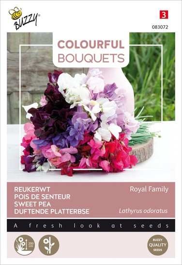 Die Samen der Platterbse können von März bis Ende Mai direkt am Bestimmungsort ausgesät werden. Diese Duft-Wicke gehört zu den herrlich duftenden, einjährigen Sorten und liefert eine sehr abwechslungsreiche Farbmischung, die schon früh und reichhaltig blüht. Diese Sorte liefert extra viele Blüten und wird mithilfe einer Kletterhilfe bis zu 2 m hoch.