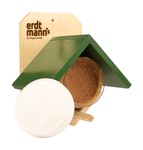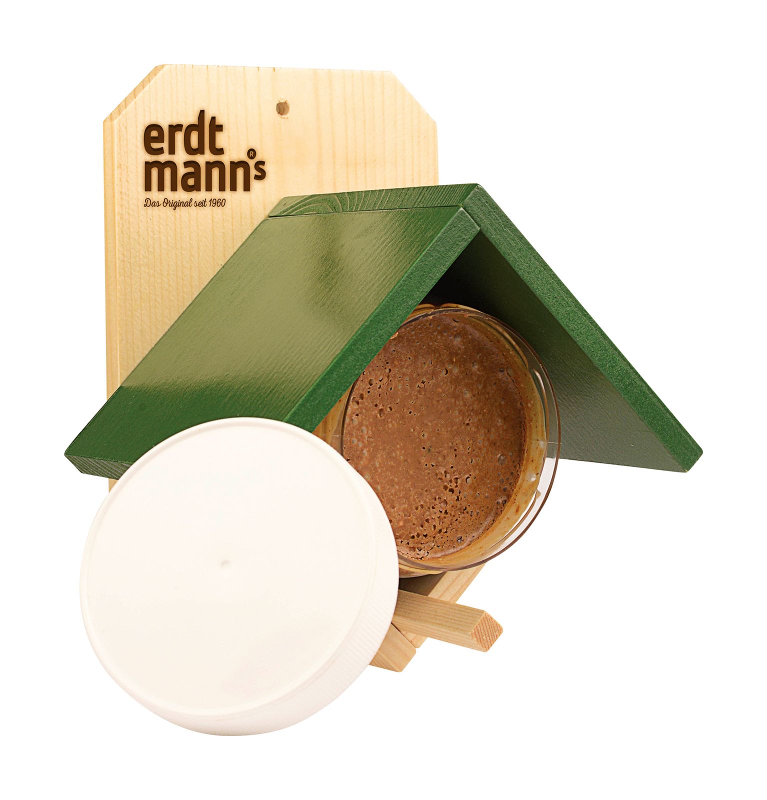 Mit Erdtmanns Erdnusspaste füttern Sie Wildvögel mit einem ganz neuen Geschmack. Sie ist speziell abgestimmt auf die Bedürfnisse der Wildvögel und ein Leckerbissen für jeden Schnabel. Bestens geeignet für die Ganzjahresfütterung. Bitte kühl und trocken lagern. Die Halterung ist aus Holz und hat die Maße: 17 x 14 x 19,5 cm