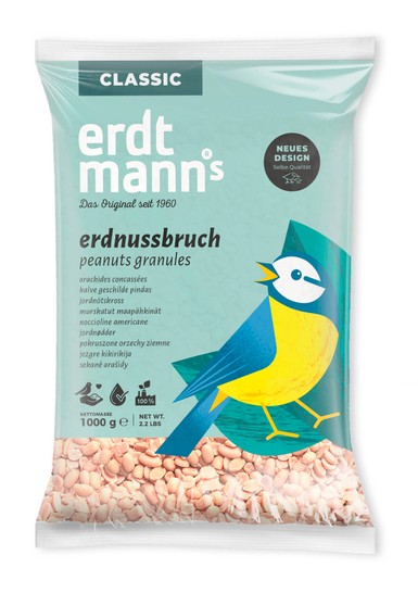 Erdnussbruch besteht aus halben Erdnusskernen und Erdnussstückchen ohne Hautschale. Es ist besonders delikat an der Futterstelle. Schnabelgerecht zugeschnitten sind sie besonders leicht zugänglich für alle Wildvogelarten von großem Wert. Sie sind eine gelungene Abwechslung an der Futterstelle. Ideal für Futterhäuschen, eine geschützte Bodenfutterstelle oder auch für den Balkon, da das Futter keine Rückstände hinterlässt. Auch für Eichhörnchen geeignet.