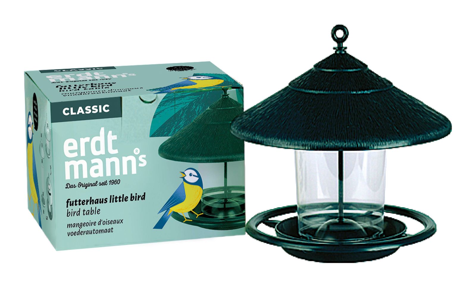 Handliches Silo-Futterhäuschen aus Kunststoff. Einfaches Nachfüllen des Futters durch die praktische Drehöffnung im Dach. Besonders geeignet für kleinere Vögel wie zum Beispiel Meisen, Rotkehlchen, Gimpel und Sperlinge. Füllmenge: 600 cm³.