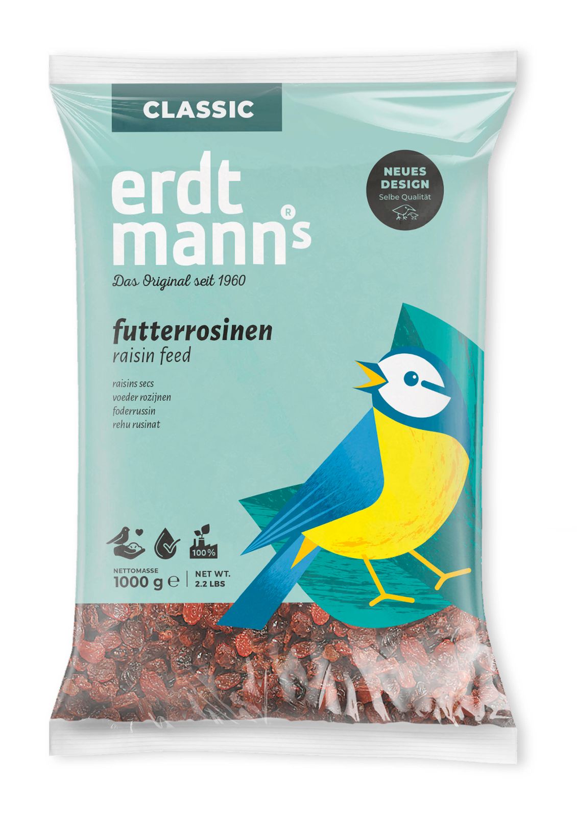 Erdtmanns Futterrosinen sind ein Leckerbissen für Weichfresser wie Amsel, Drossel, Zaunkönig, Rotkehlchen und Gartenrotschwanz. Die Rosinen enthalten die Wertstoffe der Traube in konzentrierter Form und bieten eine gelungene Abwechslung an der Futterstelle. Einfach in ein Vogelhaus oder an eine geschütze Bodenfutterstelle streuen.