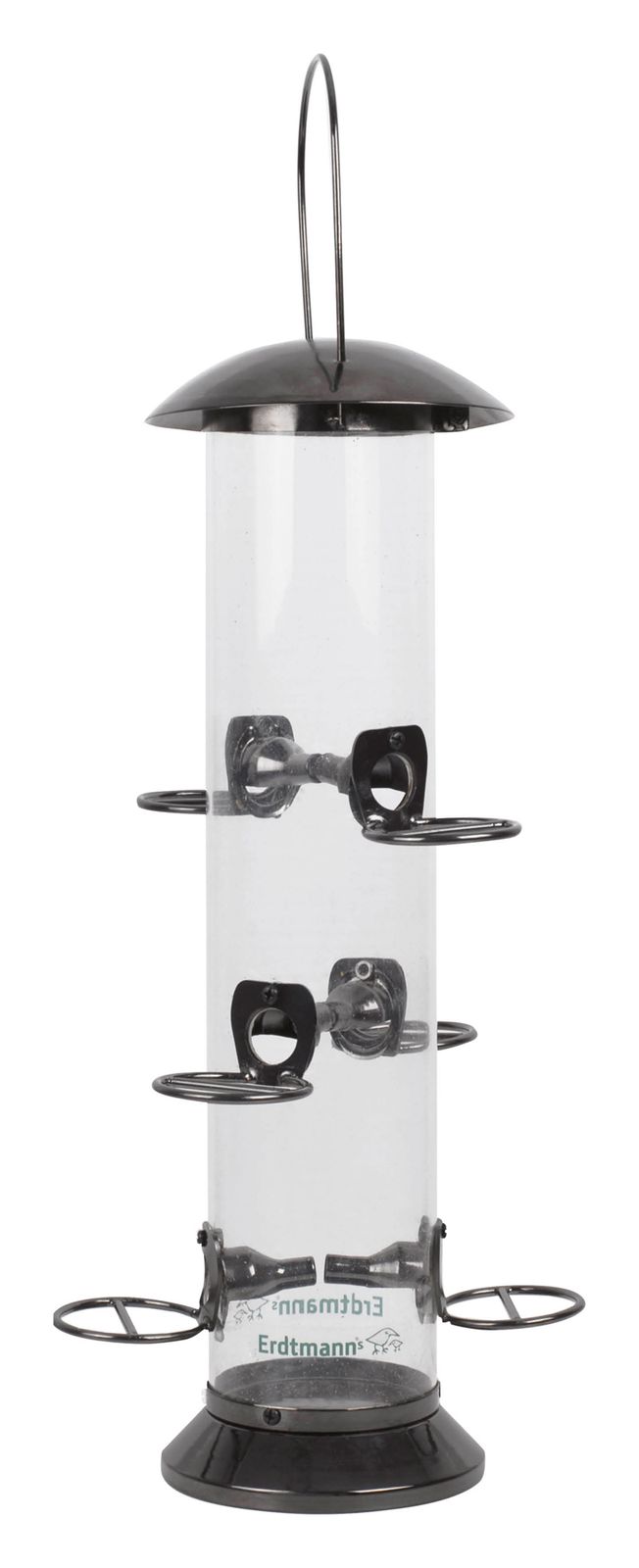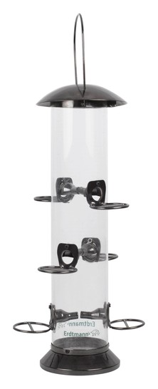 Mit dieser Futtersäule schaffen Sie eine große Bereicherung für Ihren Garten. Sie lockt besonders kleinere Vögel wie Blau-, Kohlmeise, Grünfink und Stieglitz in Ihre Nähe. Durch das Silo bleiben die Futtervorräte jederzeit sichtbar und geschützt vor Nässe und anderen äußeren Einflüssen. Die seitlich befestigten Sitzstangen bieten auch weniger kletterbegabten Vögeln einen sicheren und komfortablen Halt. Sie können jedes Misch- und Einzelfutter von Erdtmanns einfüllen. Befestigen Sie die praktische Futtersäule am Besten an einem höher gelegenen Ast und genießen Sie das das bunte Vogeltreiben. Höhe: 40 cm, Duchmesser: 8,5 cm