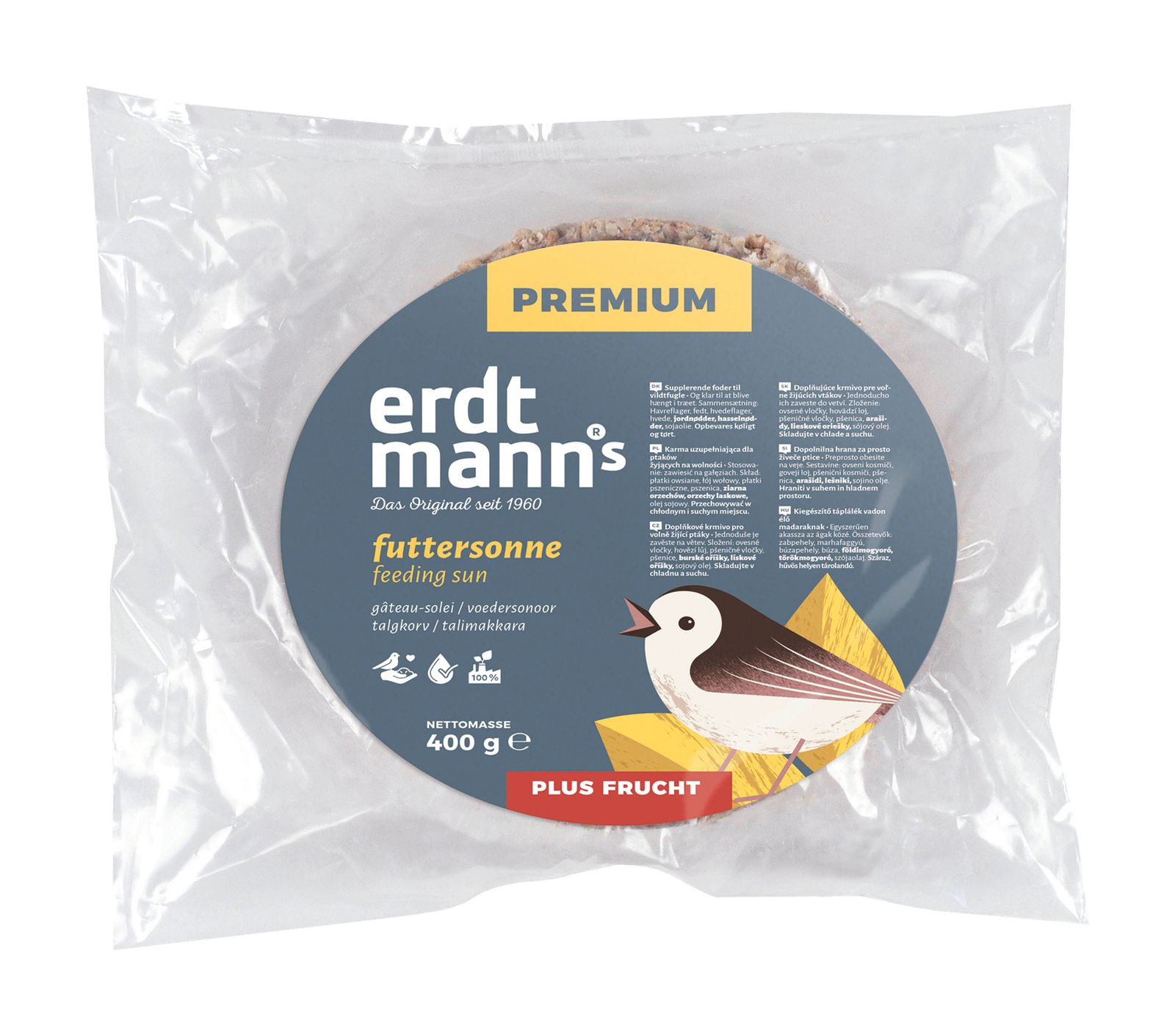 Erdtmanns Futtersonne PLUS ist eine ganz besondere Form des Wildvogelfutters: Die bewährte Meisenknödel-Rezeptur wurde erweitert um ein PLUS an Früchten und in eine neue Form gepresst. Das Plus besteht aus Rosinen, Holunderbeeren, Äpfel, Hagebutten und Ebereschenbeeren. Zusammen mit der Halterung können Sie Ihre fliegenden Gartenbesucher nun noch pflegleichter und nachhaltiger füttern. Die Futtersonne einfach hineinstecken, aufhängen und viel Freude damit haben. Es bleiben natürlich keine Netze zurück. Hinweis: Die Halterung ist hier nicht enthalten. Es handelt sich um eine Nachfüllsonne. Die Halterung mit Futtersonne ist separat erhältlich.