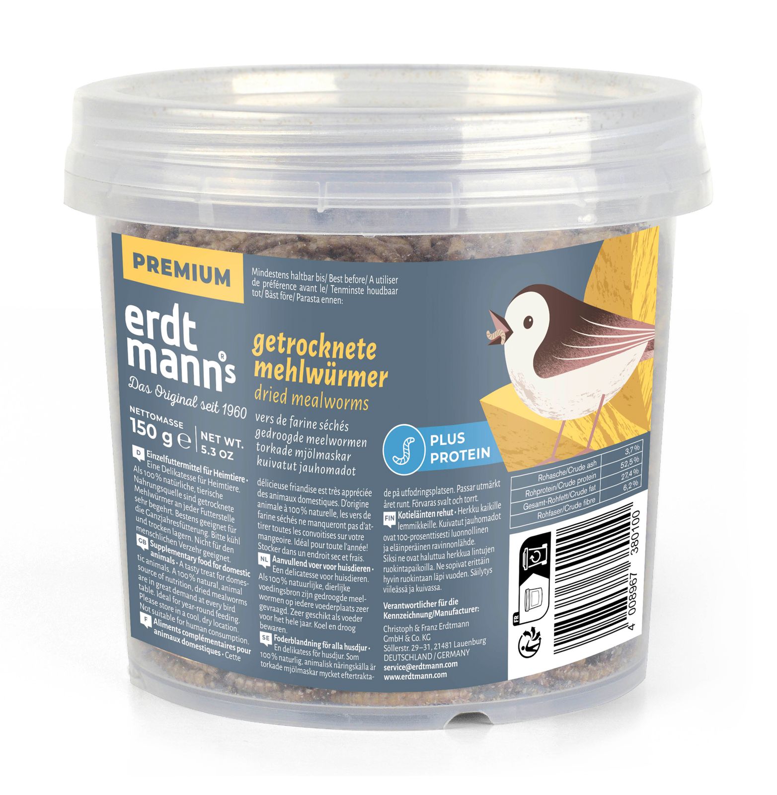Eine Delikatesse für jeden Wildvogel- auch für Jungvögel. Als 100% natürliche, tierische Nahrungsquelle sind getrocknete Mehlwürmer an jeder Futterstelle sehr begehrt. Bestens geeignet für die Ganzjahresfütterung. Bitte kühl und trocken lagern.