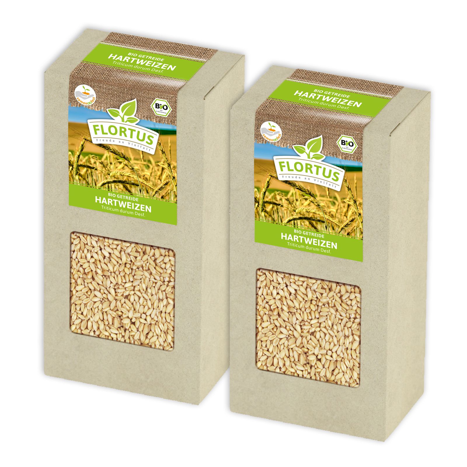 Hartweizen ist ein Nachkomme des Emmer Urgetreides. Die Weizenart wird auch als Durum oder Glasweizen bezeichnet. Das Getreide ist besonders in Europa verbreitet und wird für zahlreiche Gerichte verwendet. Dazu gehören Nudeln, Pizzateig, Bulgur, Klöße und viele andere Gerichte. Da viel Gluten im Hartweizen vorhanden ist, wird er aber vor allem für Teigwaren verwendet. Das Bio-Getreide enthält relativ viel Eiweiß, Kalium, Magnesium, Phosphor, Vitamin B1 und Vitamin B6. Als Vollkorn verwendet, kommen noch jede Menge Ballaststoffe dazu. Hartweizen ist etwas anspruchsvoller als andere Getreidesorten. Er mag einen tiefgründigen Boden, der sich schnell erwärmt. Während der Vegetationsperiode ist eine ausreichende Wasserversorgung notwendig.
