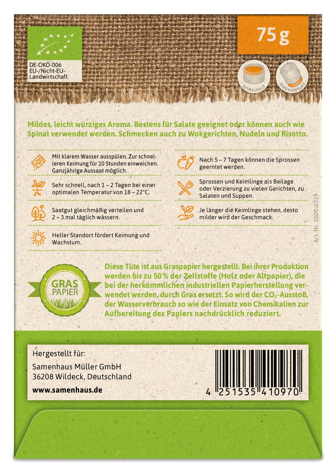 Mildes, leicht würziges Aroma. Bestens für Salate geeignet oder können auch wie Spinat verwendet werden. Schmecken auch zu Wokgerichten, Nudeln und Risotto.
