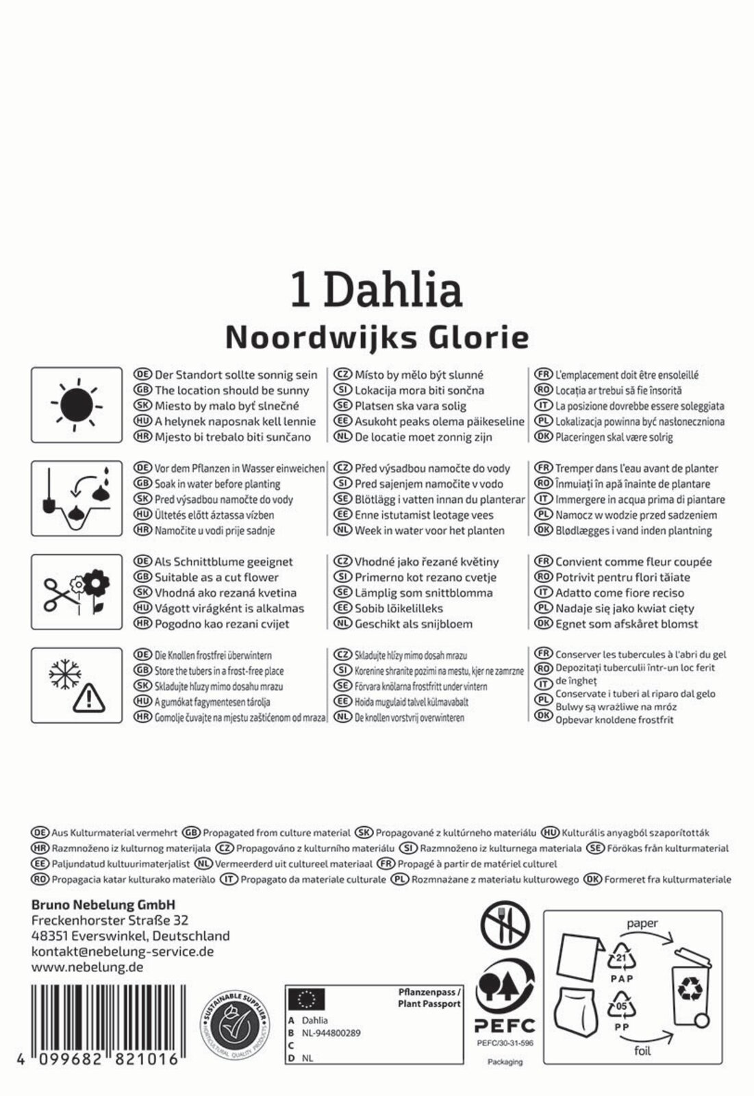 Die etwa 110 cm hohe Dekorative Dahlie Glorie von Noordwijk trägt zahlreiche Blüten im satten Orange. Die Blüten sind 1015 cm groß. Sie sind sehr dekorativ im Beet und in der Vase. Dahlien werden entweder ab März in Kübeln vorkultiviert und dann ab Ende Mai vorgetrieben ins Freiland gesetzt oder ab Mitte Mai direkt ins Beet gepflanzt.