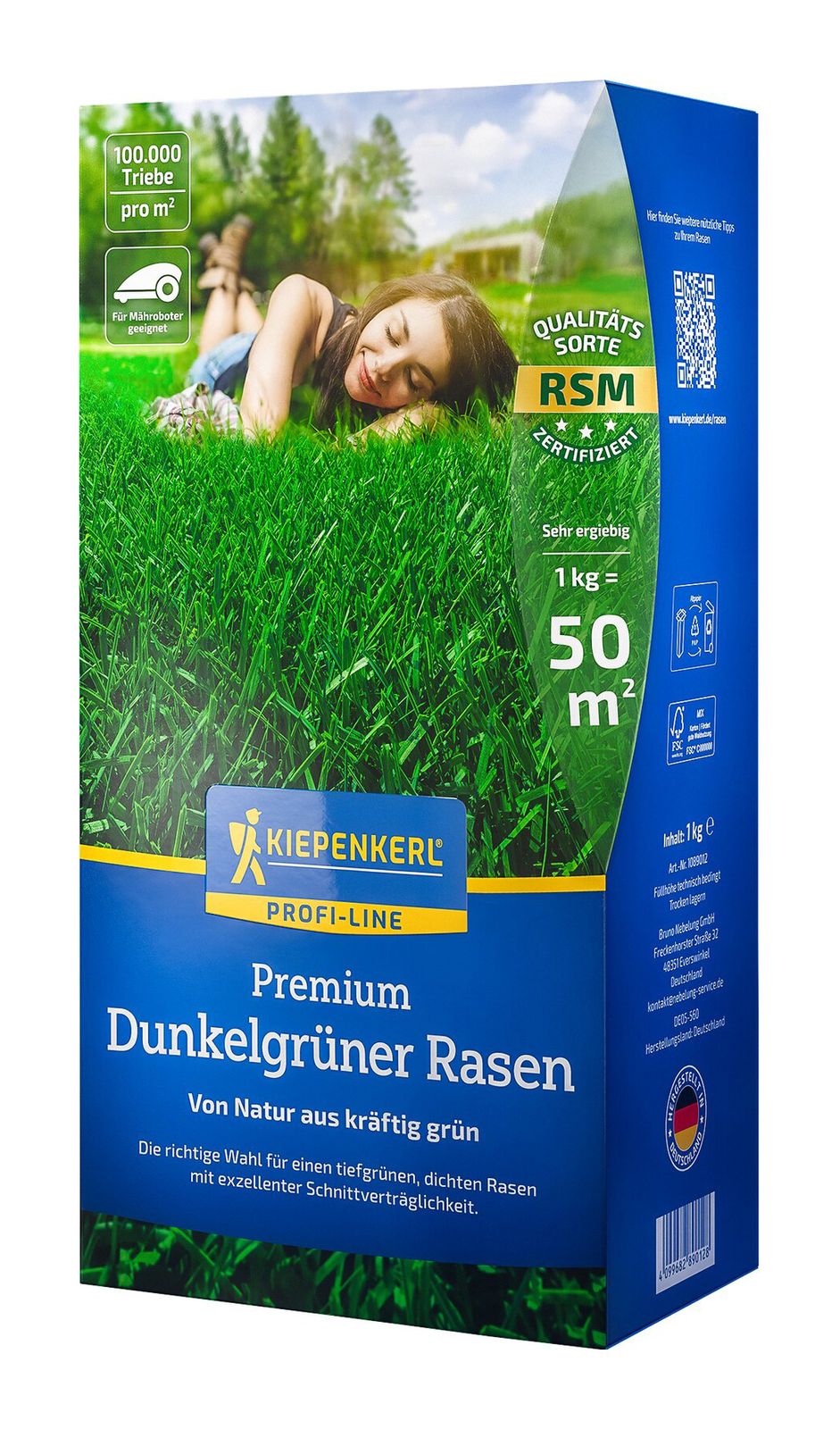 Extra dunkelgrüner Traumrasen. Strapazierfähig, keimt sehr schnell. Reicht für ca. 50 m².Geringe Aufwandmenge: nur 8 g/m².