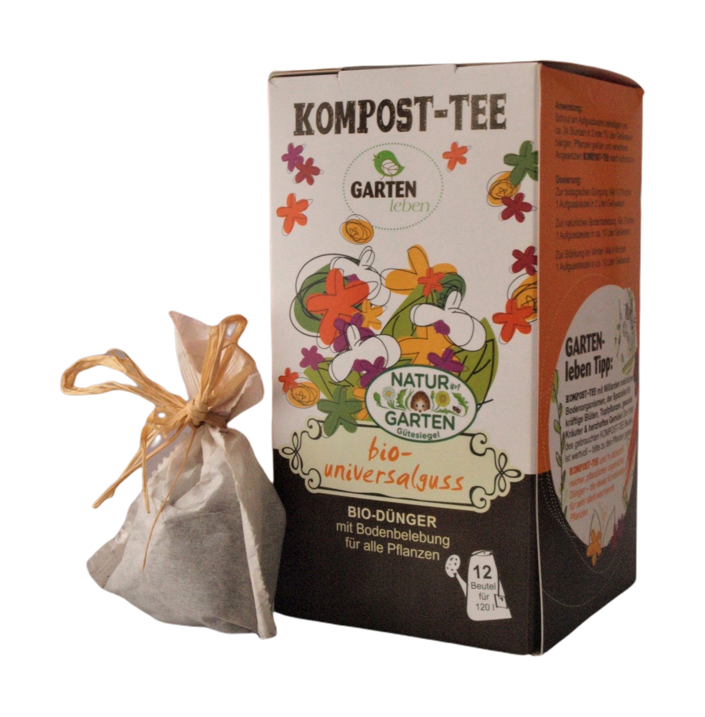 Bodenbelebung und sanfte Düngung - der Allrounder für alle Pflanzen! BIO-Guss universal KOMPOST-TEE für alle Pflanzen ist ideal für viele verschiedene Pflanzen zur höchstmöglichen Stärkung das ganze Jahr über. Alle Kräutermischungen (außer Weidenrinde) finden Sie im BIO-Universalguss vereint und natürlich auch die oben angeführten postiven Eigenschaften. Die Bodenbelebung ist so stark, das die Milliarden Bodenorganismen Ihre Pflanzen puschen und das sehen Sie an Ihren powervollen Pflanzen schon nach einigen Anwendungen. In der Wachstumsperiode KOMPOST-TEE alle 2 Wochen anwenden. Milliarden Mikroorganismen sorgen für die bestmöglichen Bedingungen im Boden. Eine sanfte Winterdüngung (4 - 6 Wochen anwenden) ist ein zusätzliches Plus in der stressigen Winterzeit.