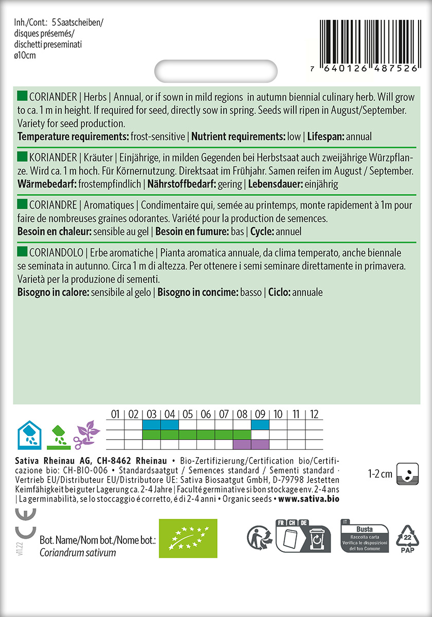 BIO Koriander (Saatscheiben) [MHD 12/2021]