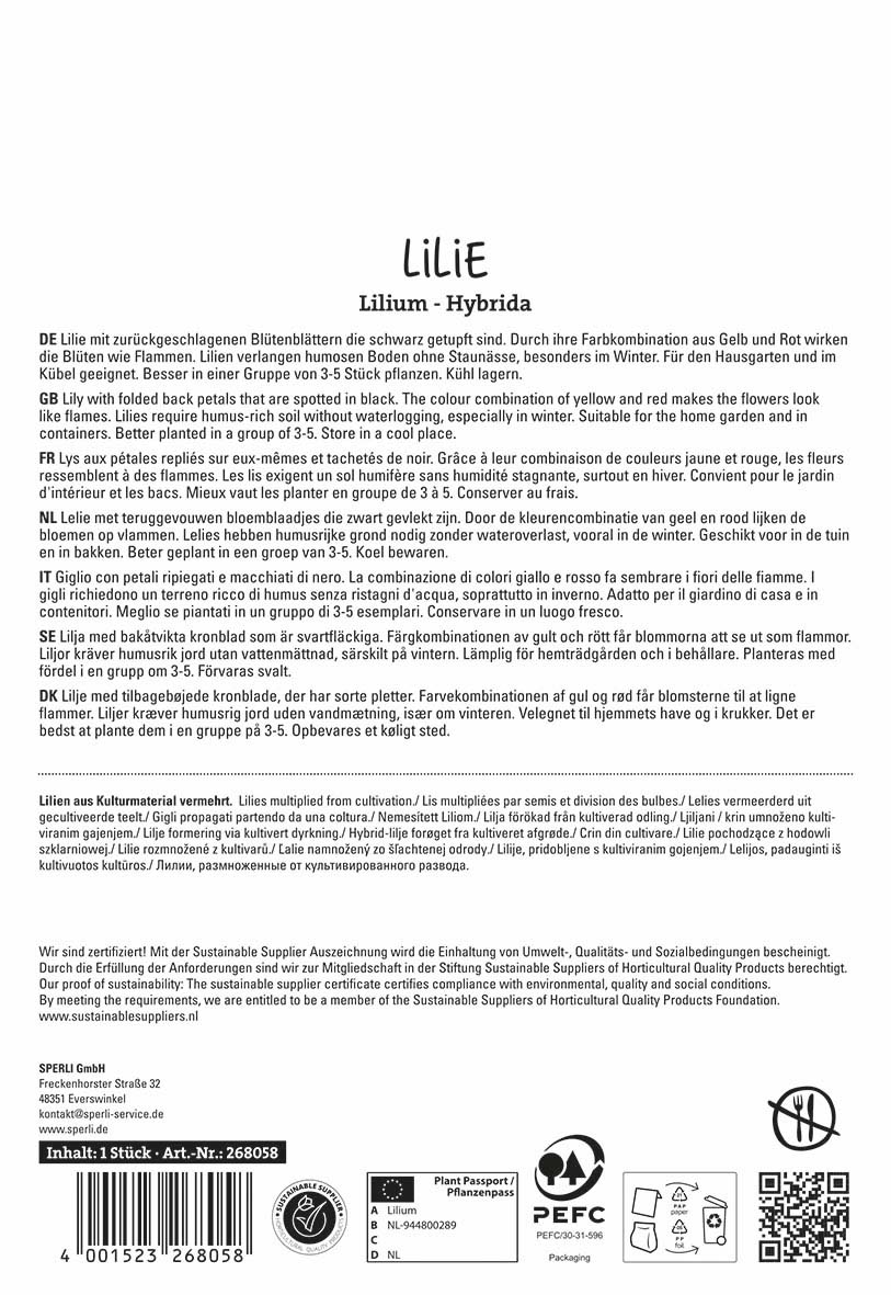 Die exotische Schönheit der Lilie `Fusion` von Sperli! Diese außergewöhnliche Sorte erreicht eine Höhe von ca. 70 bis 80 cm und ist perfekt für Kübel auf Terrasse oder Balkon sowie für den vorderen Bereich von Beeten geeignet. Ihre zart glänzenden, roten Blüten mit goldgelb gesprenkeltem Herzen sind ein absoluter Hingucker!