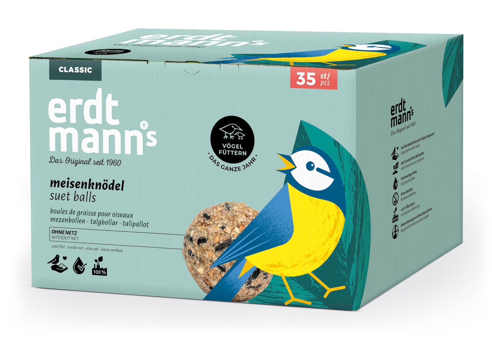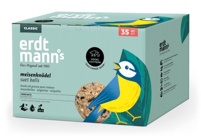Ein Vergnügen für die Vögel und ein Plus für die Umwelt, weil es keine Netze gibt. Die vielfältige Zusammensetzung von Erdtmanns Meisenknödel lockt alle Singvögel in Ihren Garten und versorgt sie nicht nur mit den nötigen Energiereserven, sondern ist auch eine gelungene Abwechslung an der Futterstelle. Die optimale Konsistenz und ganze Getreideflocken sichern eine leichte Nahrungsaufnahme. Ein Festmahl besonders für Meisen, Grünfinken, Sperlinge, Baumläufer, Zeisige und Spechte. Die Meisenknödel einfach mit praktischen Futterhaltern aufhängen