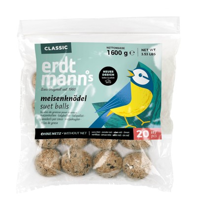 Ein Vergnügen für die Vögel und ein Plus für die Umwelt, weil es keine Netze gibt. Die vielfältige Zusammensetzung von Erdtmanns Meisenknödel lockt alle Singvögel in Ihren Garten und versorgt sie nicht nur mit den nötigen Energiereserven, sondern ist auch eine gelungene Abwechslung an der Futterstelle. Die optimale Konsistenz und ganze Getreideflocken sichern eine leichte Nahrungsaufnahme. Ein Festmahl besonders für Meisen, Grünfinken, Sperlinge, Baumläufer, Zeisige und Spechte.