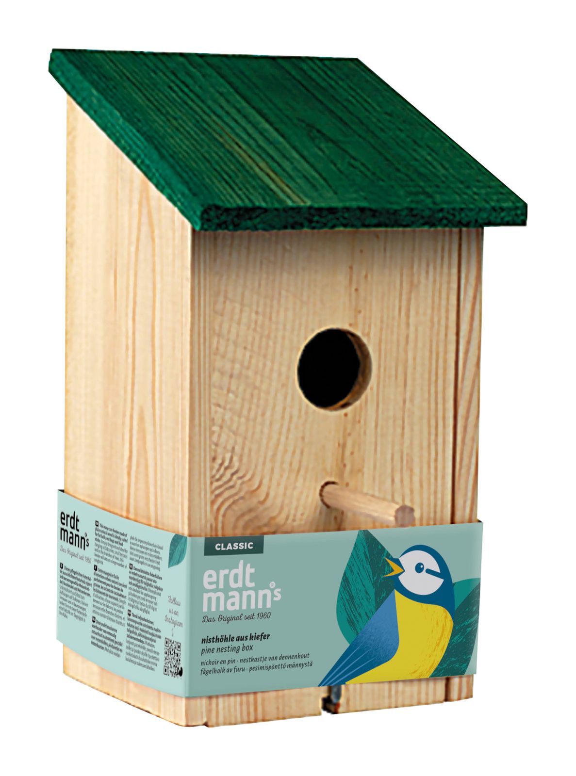 Gerade Brutmöglichkeiten für Höhlenbrüter machen sich rar. Die Wahrscheinlichkeit, dass ein aufgehängter Nistkasten – die beste Zeit zur Anbringung ist der Dezember - auch tatsächlich besetzt wird, ist sehr hoch. Zudem werden die Kästen auch im Winter von den Vögeln als Unterschlupf genutzt. Die Stange vor dem Einflugloch nutzen darin wohnende Vögel als Bühne für Ihre Gesangsdarbietungen. Man hat also gute Chancen, das Verhalten einer Vogelart ausgiebig studieren zu können, wenn man sein Grundstück zu einem Ersatz für natürliche Böschungen macht. Viele Meisenarten wie die Blau- oder Tannenmeise nisten in Kästen mit einem Einflugloch von 27 bis 28 mm Durchmesser. Wendehals, Trauerschnäpper, Feld- und Haussperling, Halsbandschnäpper sowie manche Kohlmeise und Kleiber besetzen Häuschen mit einem Einflugloch von 32 mm Durchmesser. Hängen Sie Erdtmanns Nisthöhle in einer Höhe zwischen 1,50 m und 3,00 m mit dem Flugloch Richtung Südosten auf und Ihre Nisthöhle lädt viele Singvögel zum Nisten und in den Winternächten zum Übernachten ein.