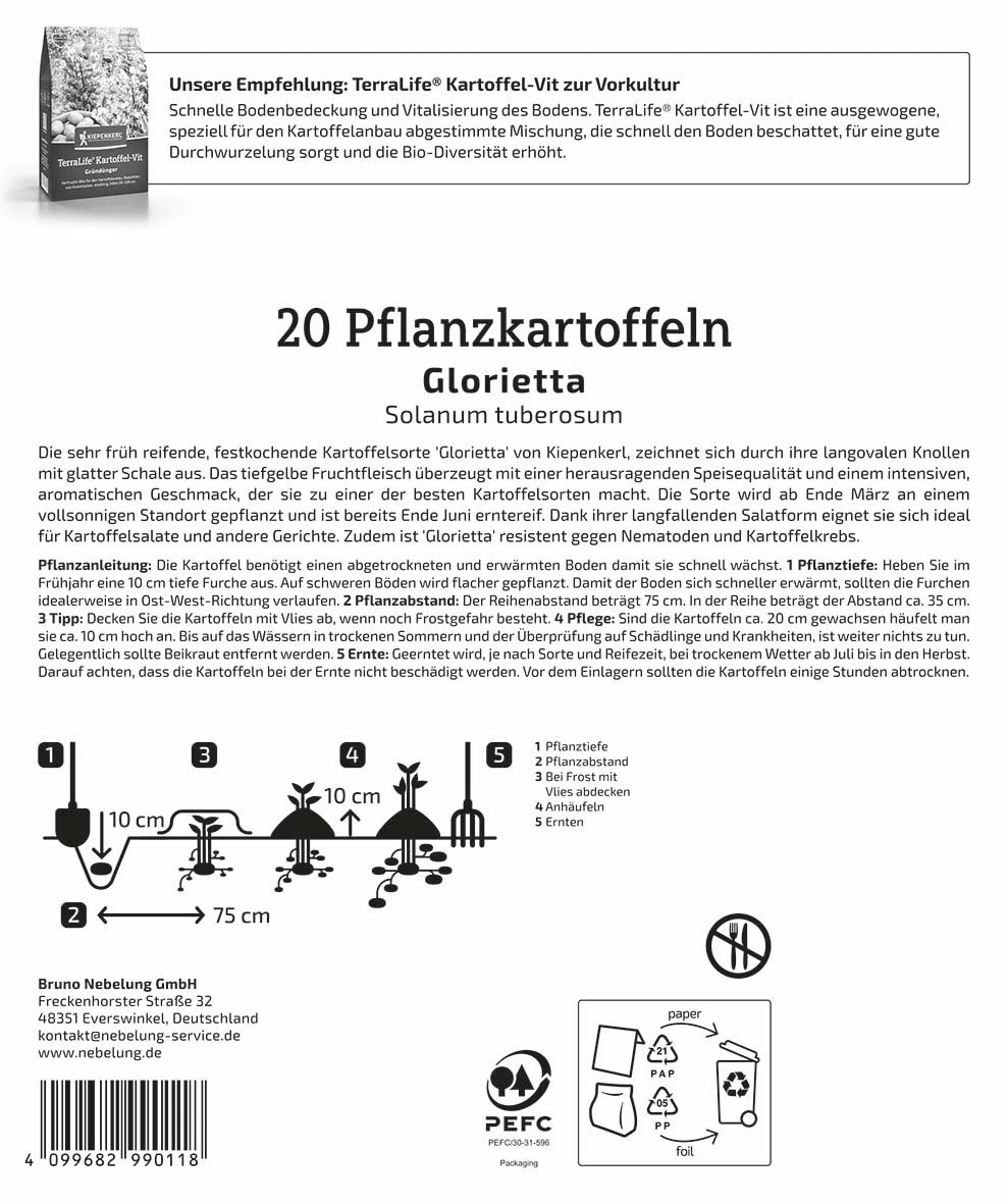 Pflanzkartoffel Glorietta (20 Stück) (gelb, festkochend, sehr früh)