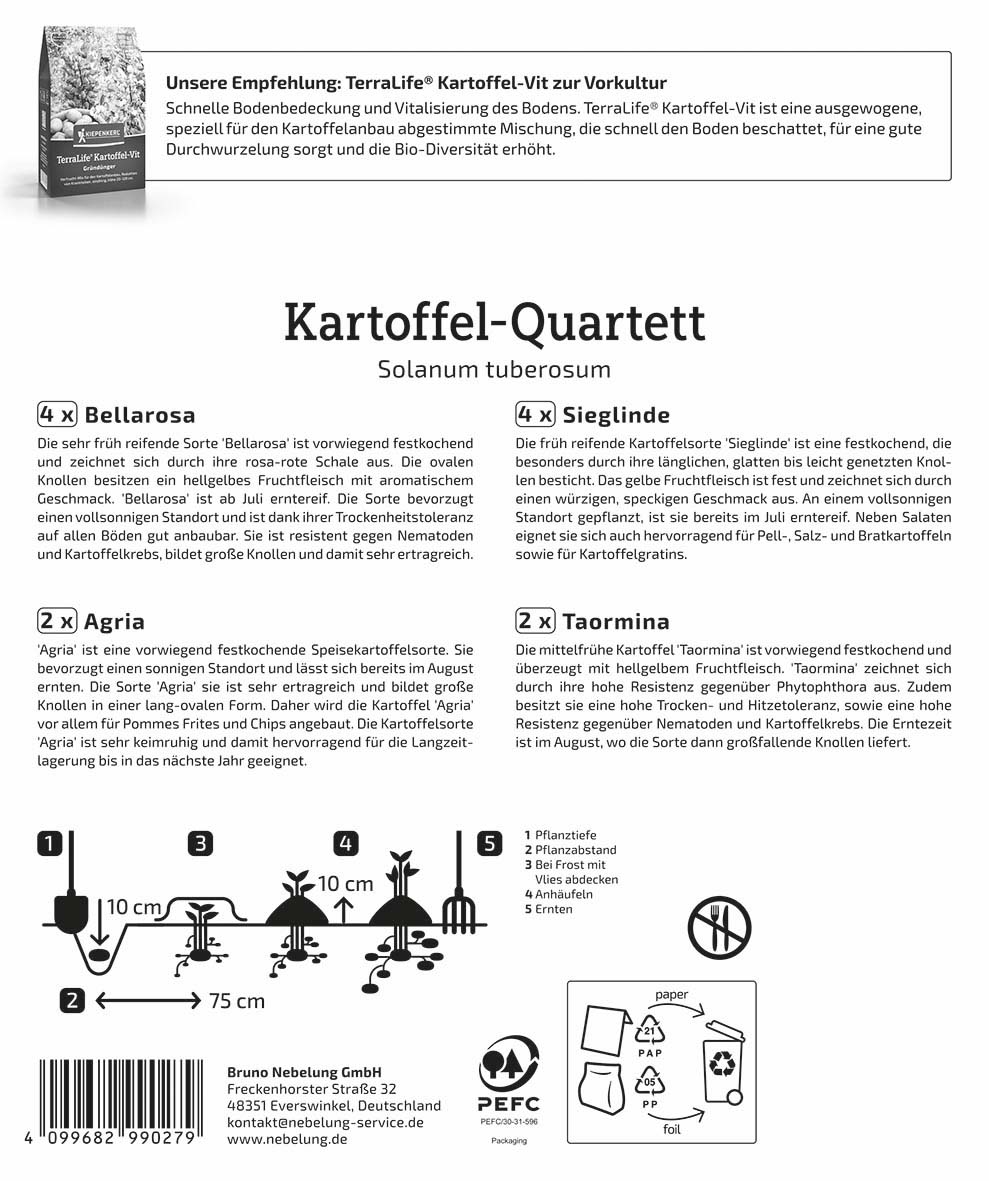 Pflanzkartoffel Quartett Reifezeit (12 Stück)