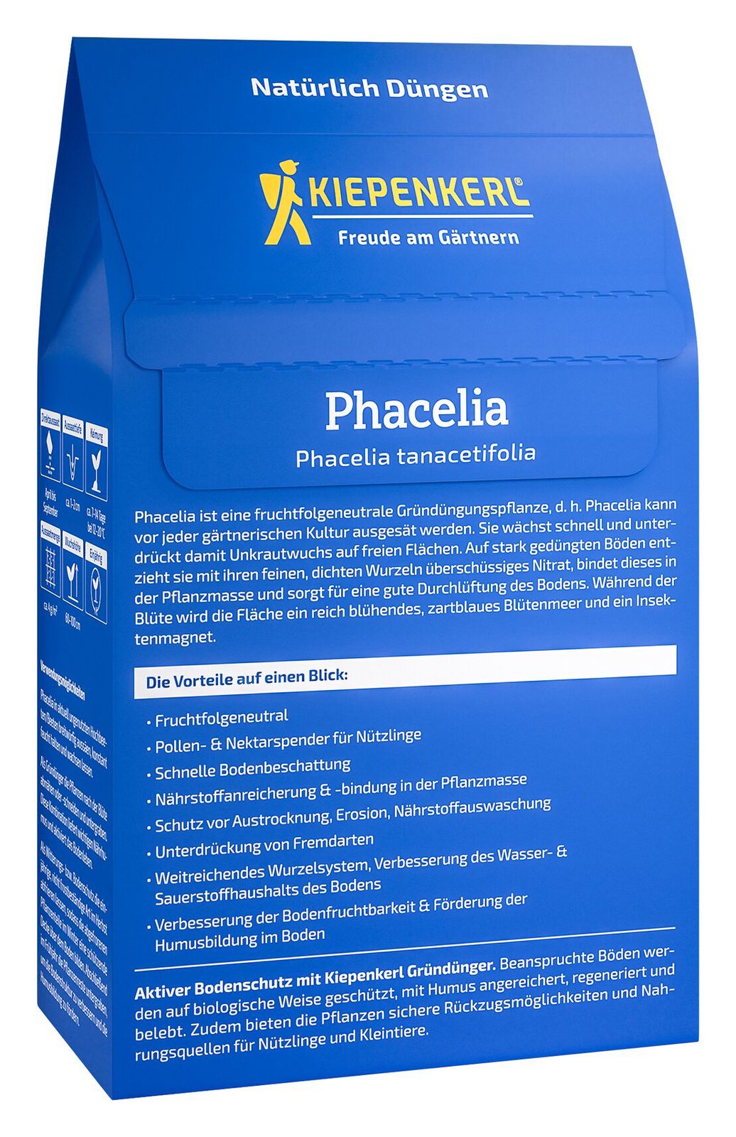 Entdecken Sie die vielseitige Phacelia, eine fruchtfolgeneutrale Gründüngungspflanze, die sich perfekt für jede gärtnerische Kultur eignet. Sie wächst schnell und unterdrückt Unkraut auf freien Flächen effektiv. Mit ihrem dichten Wurzelsystem entzieht sie stark gedüngten Böden überschüssiges Nitrat und sorgt gleichzeitig für eine hervorragende Durchlüftung des Bodens. Während der Blüte verwandelt sich Ihre Fläche in ein zartblaues Blütenmeer und zieht zahlreiche nützliche Insekten an. Alle Vorteile auf einen Blick: Fruchtfolgeneutral: Ideal für jede Pflanzsituation, ohne die Fruchtfolge zu beeinträchtigen. Pollen- & Nektarspender: Unterstützen Sie Nützlinge in Ihrem Garten und fördern Sie die Biodiversität. Schnelle Bodenbeschattung: Schützen Sie den Boden vor unerwünschtem Unkraut und halten Sie ihn kühl. Nährstoffanreicherung: Verbessern Sie die Bodenqualität durch wertvolle Pflanzenmasse. Schutz vor Austrocknung: Minimieren Sie Erosion und Nährstoffauswaschung – für einen gesunden Boden. Unterdrückung von Fremdarten: Halten Sie unerwünschte Pflanzen in Schach. Weitreichendes Wurzelsystem: Fördern Sie den Wasser- und Sauerstoffhaushalt Ihres Bodens. Bodenfruchtbarkeit & Humusbildung: Tragen Sie aktiv zur Verbesserung der Fruchtbarkeit bei. Mit dem Kiepenkerl Gründünger schützen, bereichern, regenerieren und beleben Sie Ihre Böden auf biologische Weise. Sorgen Sie für sichere Rückzugsorte und Nahrungsquellen für nützliche Tiere in Ihrem Garten. Überzeugend in seiner Wirksamkeit - Kiepenkerl Gründünger.