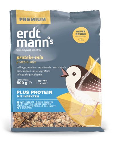 Erdtmanns Protein-Mix ist eine sehr proteinreiche Gaumenfreue für alle Wildvögel. Durch den hohen Anteil an Getreideflocken, Erdnüssen, getrockneten Insekten und kleinkörnigen Saaten ist diese Mischung ein Leibgericht vieler Vogelarten. Hinterlässt keine Schalenrückstände.