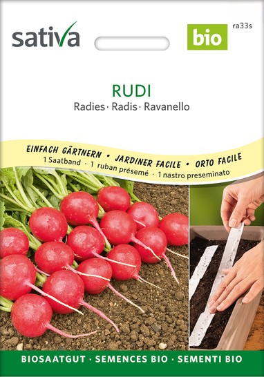 Freilandradies mit relativ früher Reife und gleichmässiger Entwicklung. Die platz- und pelzfeste Knolle ist kugelrund, leuchtend rot, mit feiner Wurzel und stabilem Laubansatz. Gut zu bündeln.