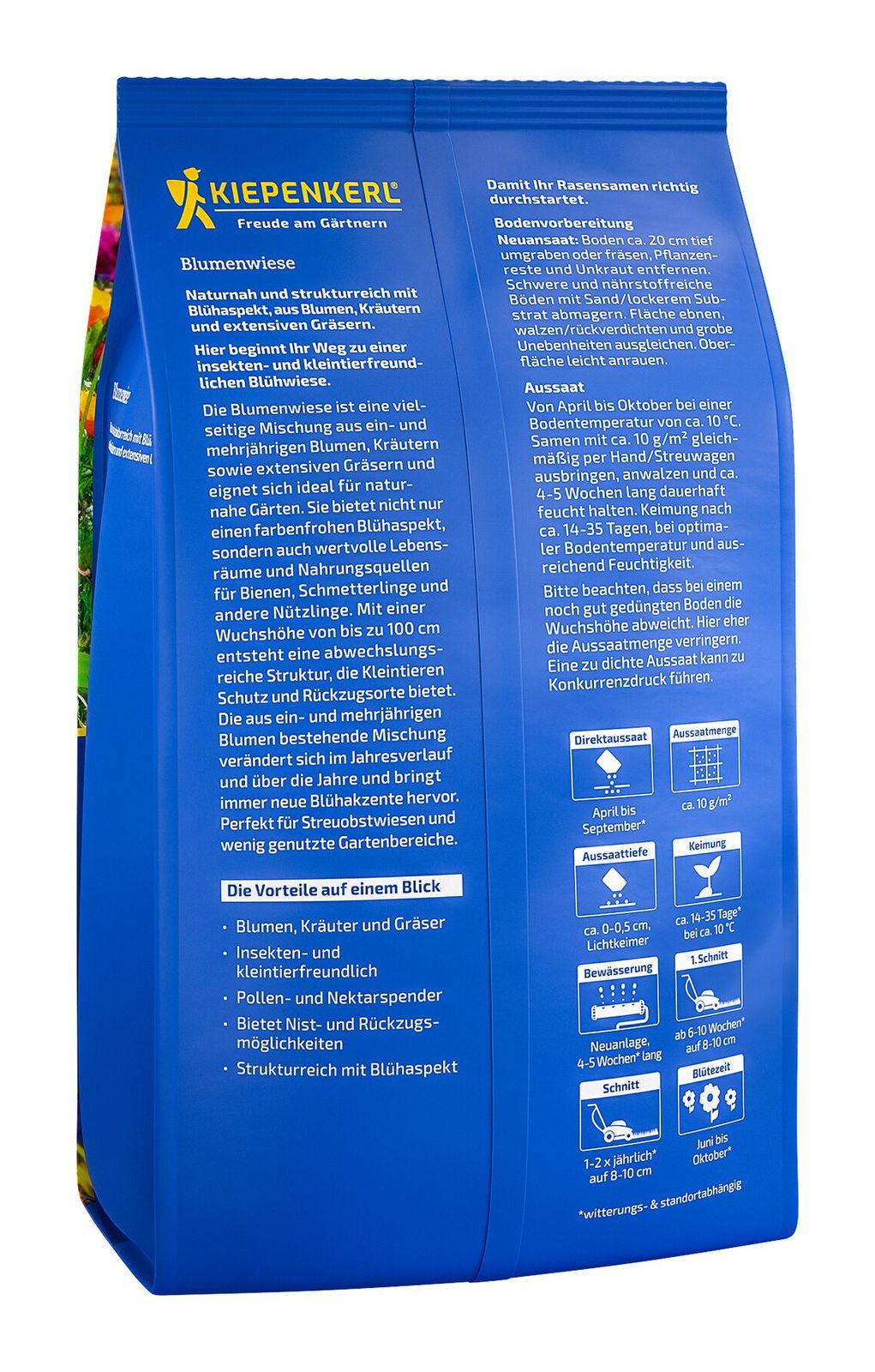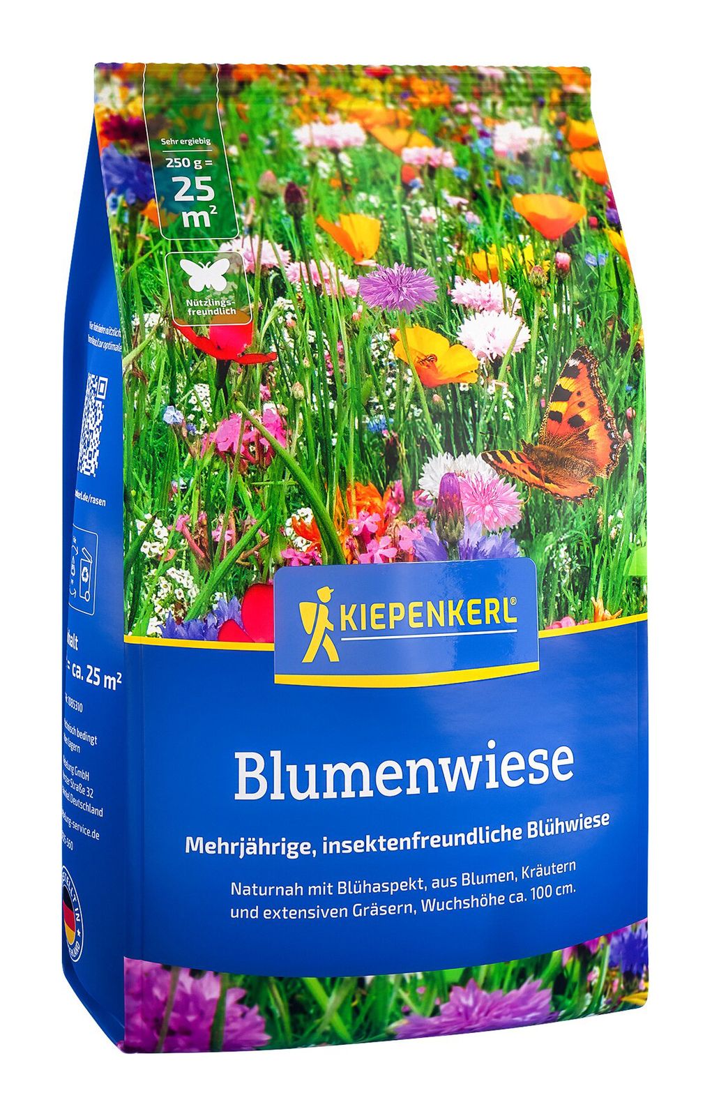 Die Kiepenkerl Blumen-Wiese ist eine sehr artenreiche Mischung aus Gräsern, Kräutern und Blumen. Sie ist nicht nur wunderschön anzusehen, sondern auch ein wertvoller Lebensraum und eine wichtige Nahrungsquelle für viele nützliche Insekten und andere Tiere.