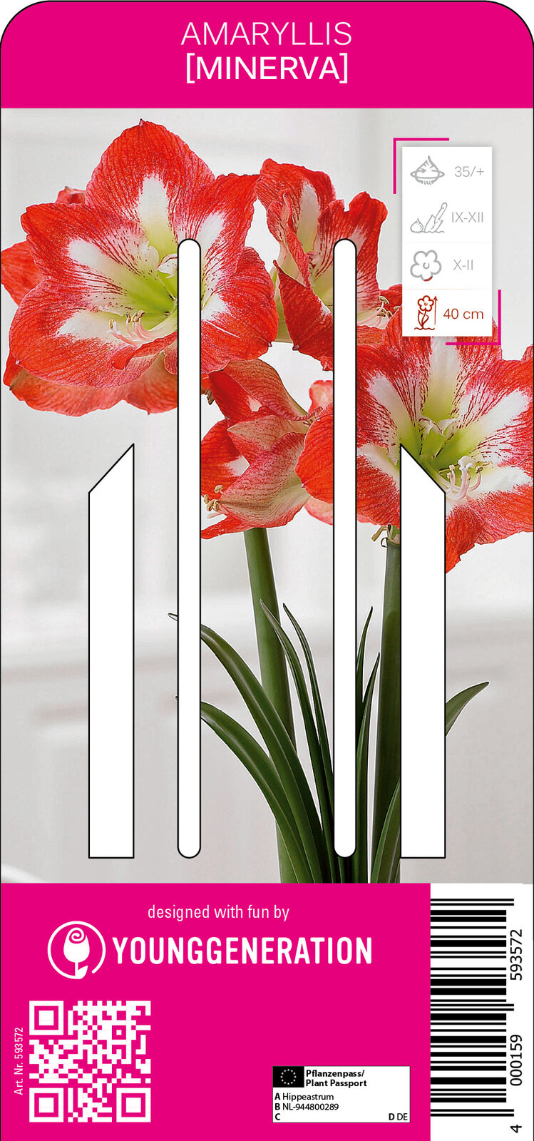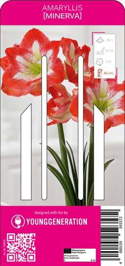 Die Young Generation Amaryllis 'Minerva' ist ein faszinierender Ritterstern mit großen, weit geöffneten roten Blüten, die bis zu 18 cm breit und zart mit einem weißen Stern und einer grünen Kehle geschmückt sind. Insgesamt wächst die Zierpflanze auf 40 cm heran und blüht mitten in der Weihnachtszeit von Dezember bis Februar. Viel Pflege benötigt sie dabei nicht. Lediglich ein halbschattiger Platz auf einer warmen Fensterbank und gelegentliche Wassergaben sind für eine üppige Blütenbildung wichtig. 'Minerva' ist zwar in der Regel im Topf anzutreffen, kann aber auch geschnitten und in die Vase gestellt werden.