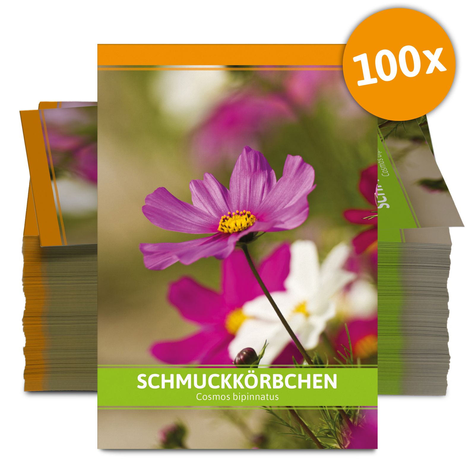 Schmuckkörbchen tragen ihren Namen zu Recht. Die wunderbaren Blumen wirken ausgesprochen filigran und zart. Außerdem sind sie eine wichtige Nahrungsquelle für Insekten und Schmetterlinge. Die Samentütchen sind ein tolles Gastgeschenk und Werbegeschenk für Freunde und Kunden. Ihr Logo oder die Werbung können Sie auf das schick gestaltete Samentütchen mit einem Aufkleber anbringen.