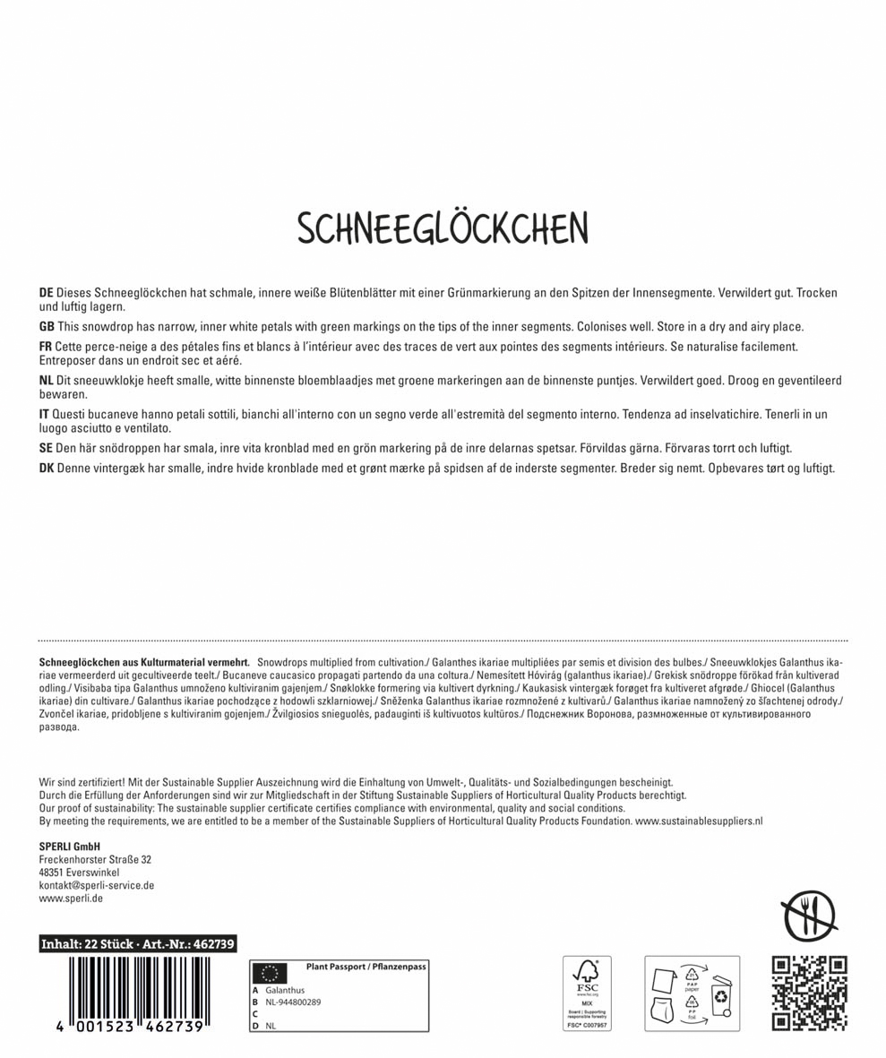 Das Schneeglöckchen, hier im Maxi-Pack, kennen wir alle, denn es begrüßt uns bereits im Februar mit seinen schmalen, weißen Blütenblättern und dem leichten, frischen Grün an den Spitzen der Innensegmente. Dieser Frühblüher macht den ganzen Februar und März Lust auf den Frühling und versorgt Bienen, Hummeln & Co. auf ihren frühen Flügen mit Nektar bzw. Pollen. Er mag es, wenn Du ihn in ein Gefäß pflanzt und er so die Balkon- oder Terrassensaison eröffnen darf!