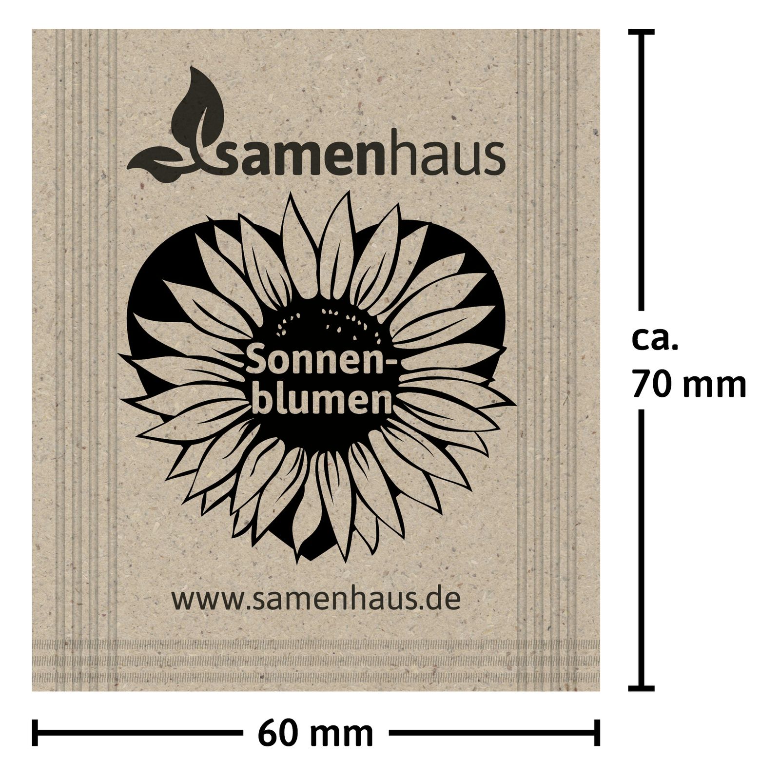 Was wäre ein Sommer ohne Sonnenblumen? Die riesigen Blumen mit den großen gelben Blüten gehören einfach dazu. Mit der Sorte Peredovick gibt es außerdem Sonnenblumen, die pflegeleicht sind und keine Ansprüche an den Standort stellen. Obendrein freuen sich Insekten und Vögel über die Blütenpracht. Als Werbegeschenk, Gastgeschenk und Give Away verschenken Sie ein Stück Sommer. Die 500 Samentütchen bestehen aus nachhaltigem Graspapier, das umweltfreundlich ist. Samen der Sonnenblume Peredovick sind eine nachhaltige Werbeidee und ein ökologisches Gastgeschenk.