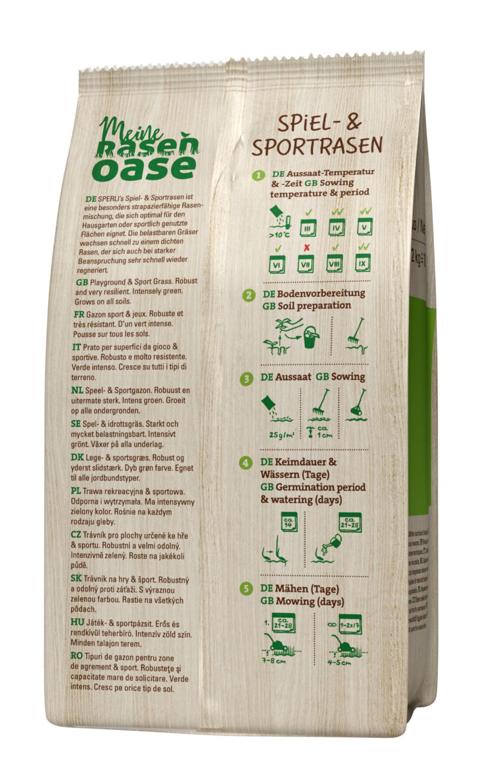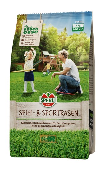 Entdecke die Energie Deines Gartens: SPERLI's RSM 2.3 Spiel- & Sportrasen für ein strapazierfähiges und dichtes Grün! Belebe Deinen Garten mit SPERLI's RSM 2.3 Spiel- & Sportrasen und genieße einen dichten, strapazierfähigen Rasen, der sowohl für Hausgärten als auch für sportlich genutzte Flächen ideal ist. Diese besondere Rasenmischung aus höchst bewerteten RSM-Sorten hält auch äußersten Belastungen stand, bietet schnelle Regeneration nach Beanspruchung und garantiert einen zuverlässig dichten Rasen. Geprüfte RSM 2.3: RSM = Regel-Saatgut-Mischung SPERLI's RSM 2.3 Spiel- & Sportrasen ist eine geprüfte Regel-Saatgut-Mischung (RSM 2.3 Gebrauchsrasen - Spielrasen), die nach den strengen Vorgaben der FLL hergestellt wird. Die hochwertigen Gräsersorten und deren Mischungsverhältnisse gewährleisten gleichmäßiges Wachstum und hervorragende Resistenz gegen Belastungen. Mit dem RSM-Prädikat erhältst Du garantiert beste Rasensamenqualität für Deinen Garten. Wofür steht RSM? RSM steht für "Regel-Saatgut-Mischung" und bezeichnet eine Norm in der Rasensaatgutherstellung, die sicherstellt, dass jede Mischung spezifischen Qualitätsstandards für verschiedenste Anwendungsbereiche und Standorte entspricht. Diese Standards werden von der FLL (Forschungsgesellschaft Landschaftsentwicklung Landschaftsbau e.V.) ausgearbeitet und beinhalten unteranderem Vorgaben für Mischungsverhältnisse von RSM Rasen und eine Sorten- und Eignungsübersicht von streng geprüften Gräsersorten. Rasensamen mit dem RSM-Prädikat gewährleisten eine hohe Qualität und eignen sich für spezielle Verwendungszwecke, wie etwa die Anlage strapazierfähiger Rasenflächen. Dadurch kannst Du sicher sein, dass Dein Rasen gleichmäßig wächst und Belastungen effektiv standhält. Die wichtigsten Vorteile im Überblick: Optimale Mischung für strapazierfähigen und schnell regenerierenden Rasen. Höchster Qualitätsstandard mit geprüftem RSM-Prädikat für robustes und dichtes Grün. Vielseitig einsetzbar für Hausgärten und sportlich genutzte Flächen.