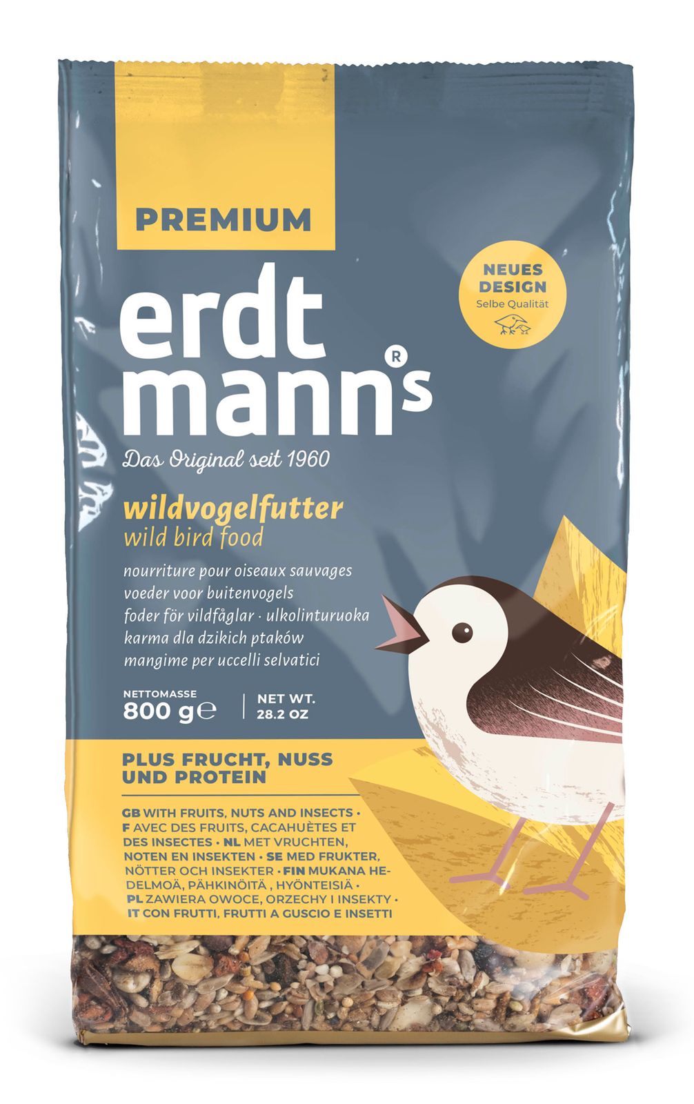 Erdtmanns Wildvogelfutter PLUS ist für Wildvögel eine hochwertige Kost mit einem moderaten Energiegehalt. Es sorgt das ganze Jahr hinweg für viel Vitalität und Abwechslung an Ihrer Futterstelle. Das Besondere ist die wertvolle Mischung aus getrockneten Früchten, getrockneten Mehlwürmern und Heuschrecken, feinen Sämereien, Erdnussbruch und geschälten Sonnenblumenkernen. Da keine Schalenrückstände zurückbleiben, ist Erdtmanns Wildvogelfutter PLUS perfekt für eine saubere Futterstelle (auch für Balkonfütterung).