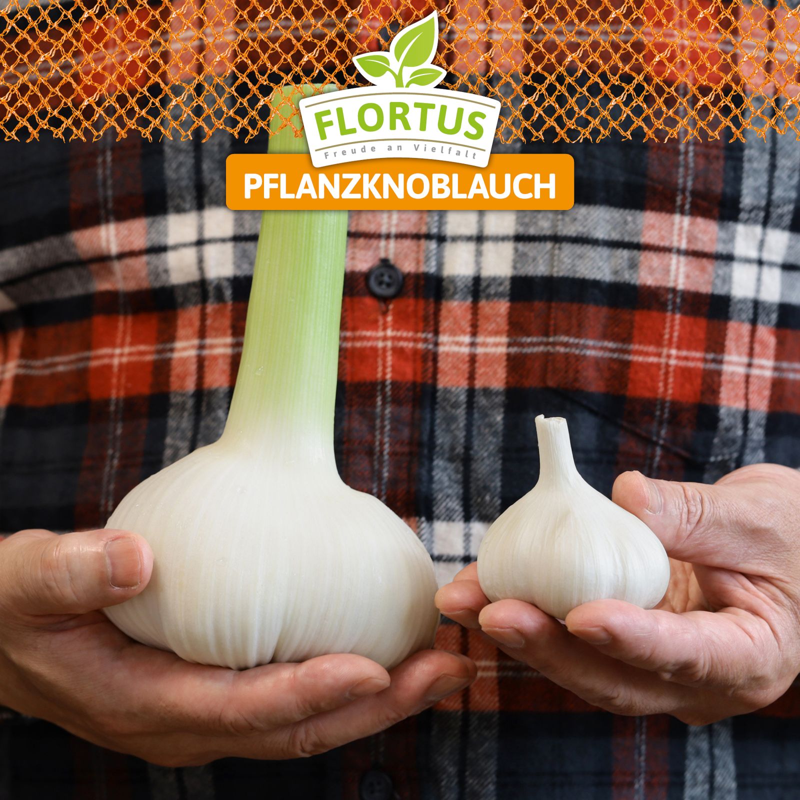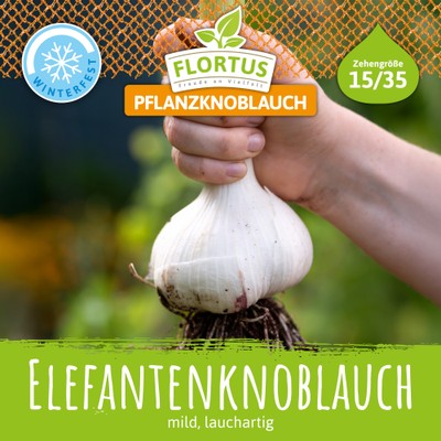 Trotz seines Namens ist der Elefantenknoblauch botanisch gesehen näher mit dem Lauch verwandt als mit echtem Knoblauch. Die Knollen sind besonders groß und haben nur wenige, aber sehr große Zehen. Der Geschmack ist deutlich milder und weniger scharf als bei herkömmlichem Knoblauch, weshalb Elefantenknoblauch auch roh sehr gut verwendbar ist – z. B. in Salaten oder Dips. Beim Kochen oder Braten entwickelt er ein feines, leicht süßliches Aroma. Die Pflanzen sind winterhart und mehrjährig und können sowohl im Herbst als auch im Frühjahr gepflanzt werden.